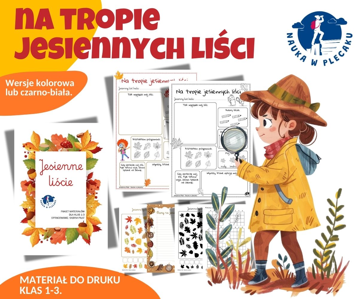 🍂 Na tropie jesiennych liści – to materiał idealnie dopasowany do jesiennych działań w klasach 1-3. Zabierz dzieci na spacer. Badajcie i opisujcie jesienne liście. 🍂