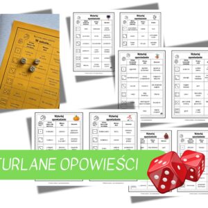 Materiały, które urozmaicą Twoje lekcje związane z twórczym pisaniem. Turlane opowiadanie to doskonały pomysł dla tego, kto chce, aby uczennice i uczniowie rozwijali swoje umiejętności pisarskie. Wylosowane elementy pozwolą na wykorzystanie wyobraźni do stworzenia ciekawych prac.